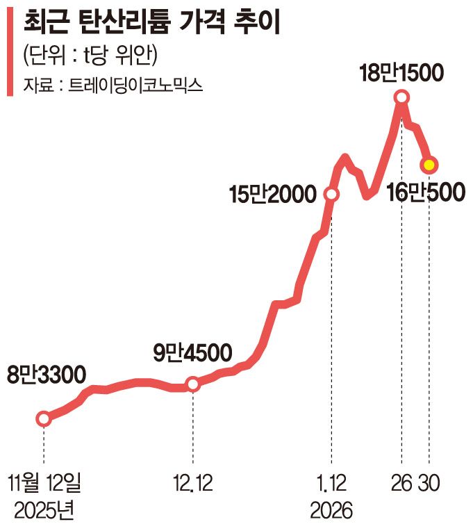 탄산리튬 값 92%까지 뛰어올라