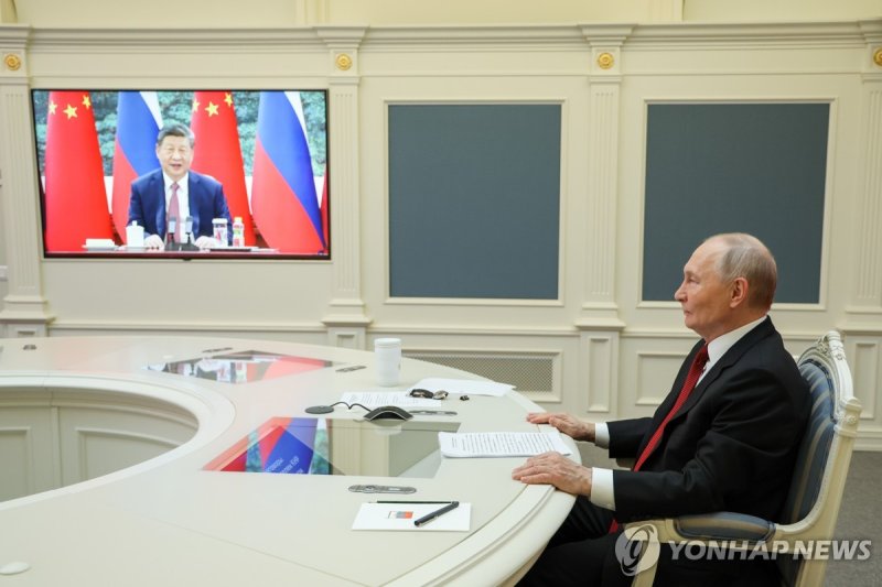 중국 관영 신화통신은 이날 시 주석이 베이징 인민대회당에서 푸틴 대통령과 화상회담을 진행했다고 밝혔다.