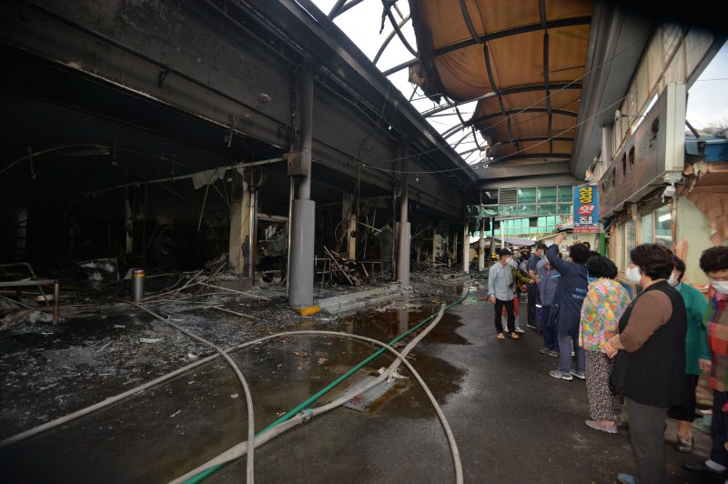 5일 영덕군에 따르면 당시 화재로 78개 점포 중 48곳이 전소됐고, 30곳은 그을림 등 피해를 봤다. 추석 대목에 팔려던 제수도 몽땅 탔다. 이후 군은 오십천변 주차장에 임시 장터를 마련하고 피해 복구에 나섰다.