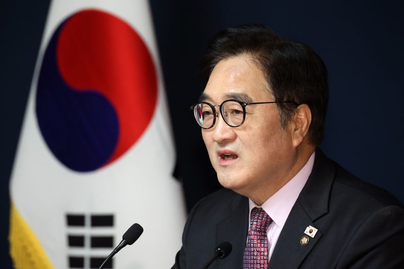우원식 국회의장이 5일 서울 여의도 국회 사랑재에서 신년 기자회견을 하고 있다. 사진=서동일 기자