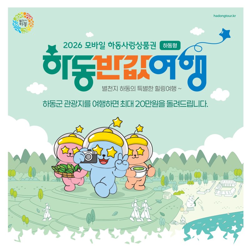 군 관계자는 "하동 반값 여행은 단순히 여행비를 지원하는 사업이 아니라 여행객의 소비가 지역 소상공인과 농특산물로 이어지는 착한 여행 모델"이라며 "부담 없이 하동을 찾고, 머무는 동안 지역경제와 상생하는 여행이 되길 바란다"고 말했다.