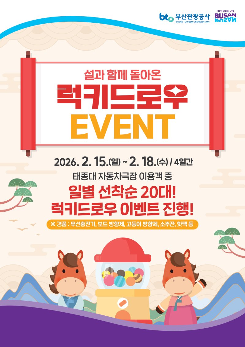 설 연휴 기간에는 매일 선착순 20대를 대상으로 '드라이브 인 영도 럭키드로우'가 운영된다. 관람객은 현장 캡슐 머신을 통해 참여할 수 있다. 당첨자는 청사포 부산슈퍼 기념품 1종 또는 핫팩 2개를 받는다.