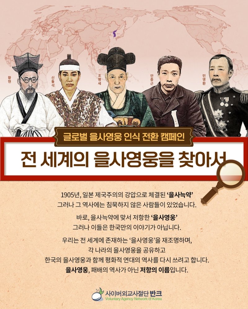 "전 세계 '을사영웅' 찾습니다"…반크, 글로벌 인식 전환 캠페인제국주의 저항한 각국 영웅 재조명