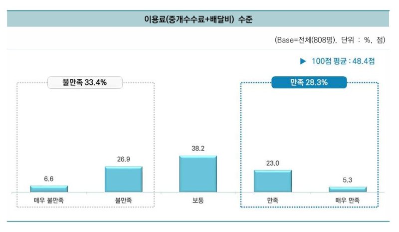 5일 중소벤처기업부(중기부)와 동반성장위원회(동반위)가 발표한 '2025년 배달3사 체감도 조사'와 '2025년 배달앱 입점업체 인식 조사' 결과에 따르면 배달앱 이용료(중개수수료 및 배달비) 수준 만족도는 28.3%에 그쳤다. 불만족은 33.4%, 보통은 38.2%였다.