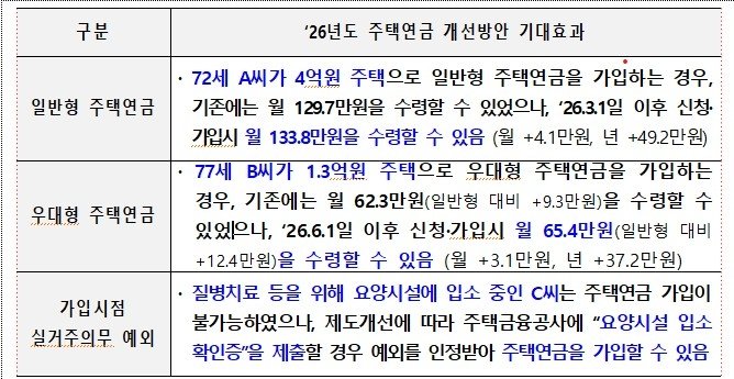 오는 6월 1일부터 2억5000만원 미만 주택 보유자(부부 합산 1주택자)나 부부 중 기초연금수급자 등 취약 고령층에 대한 '우대형 주택연금' 수령액도 늘어난다.