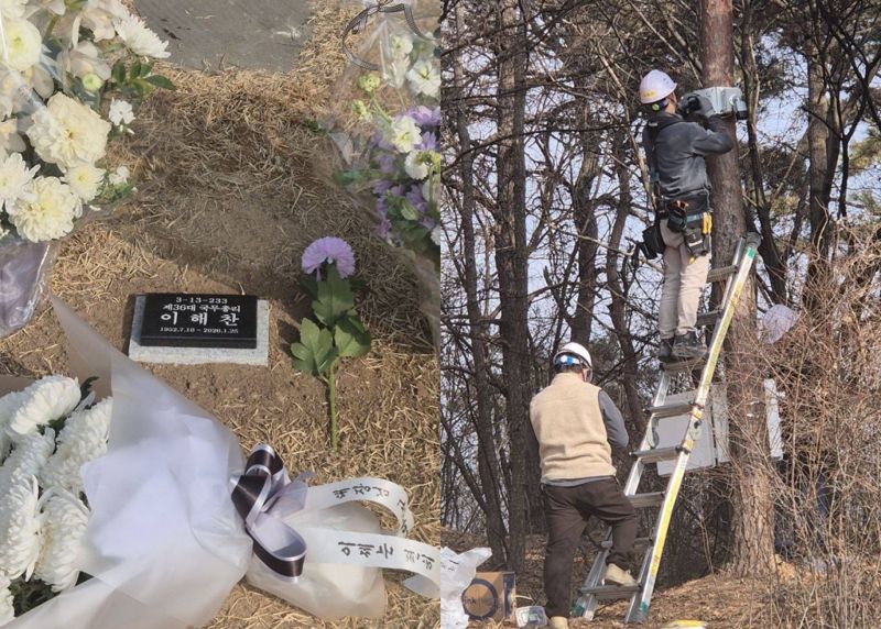 최민희 의원은 5일 자신의 사회관계망서비스(SNS)에 "이해찬 대표 묘역에 CCTV를 설치 중"이라며 세종시 산울동 은하수 공원에 안장된 고인의 묘역 주변에 CCTV를 달고 있는 사진을 공개했다.