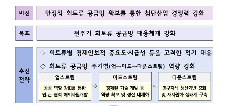 글로벌 공급망 불안이 상시화되는 상황에서 희토류를 핵심 광물로 관리하고, 정부 차원의 대응 체계를 강화하겠다는 취지다.