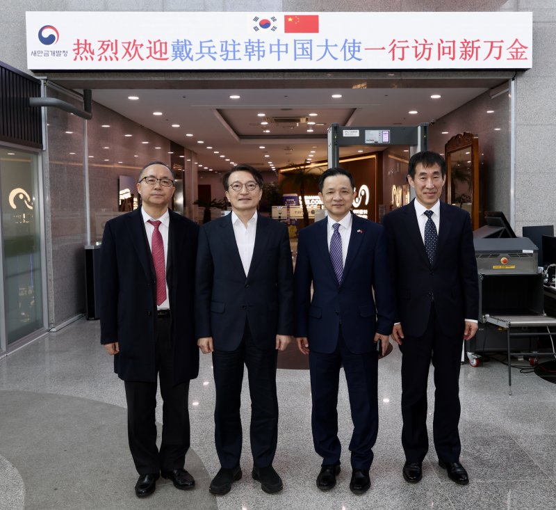 [군산=뉴시스]고석중 기자 = 새만금개발청이 5일 다이빙(戴兵) 주한 중국대사와 왕즈린(王治林) 경제공사 등 방문단을 접견하고, 새만금 개발 현황을 공유하며 중국 기업의 투자 협력 확대 방안을 논의했다.