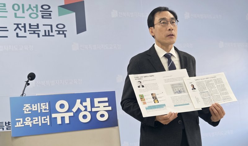 유 예비후보는 5일 전북교육청에서 기자회견을 열고 "2024년 1월 언론에 기고한 (저의) 글 일부를 천 교수가 베껴 같은 해 2월 지역 일간지에 기고한 글에 그대로 반영됐다"고 주장했다.