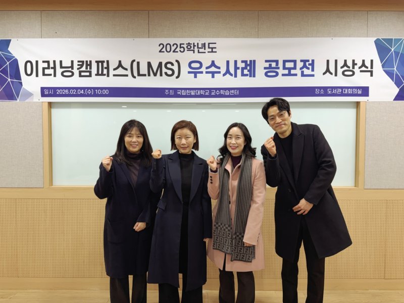 [대전=뉴시스]유순상 기자 = 국립한밭대학교 교수학습센터는 전날 교내 도서관에서 '2025학년도 이러닝캠퍼스(LMS) 우수사례 공모전' 시상식을 개최했다고 5일 밝혔다.