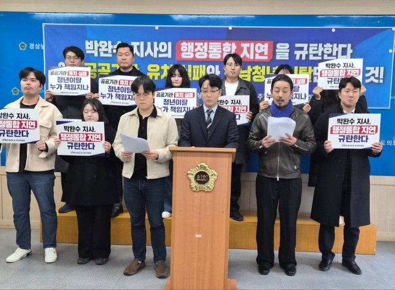 그러면서 "행정통합을 미루는 전략은 경남을 경쟁에서 탈락시키고 도내 청년의 미래를 되돌릴 수 없게 만들 것"이라며 "박완수 지사는 정부 정책 기조에 맞춰 책임 있게 행정통합 협의에 나서야 한다"고 촉구했다.