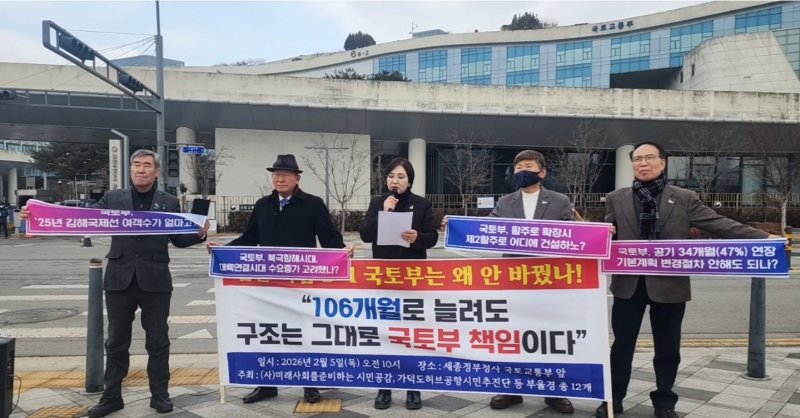 미래사회를준비하는 시민공감, 가덕도허브공항시민추진위원회 등 부산·울산·경남 지역 12개 시민단체는 5일 국토교통부 세종청사를 방문해 기자회견을 열고 입장문을 전달했다고 밝혔다.