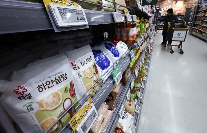 29일 서울의 한 대형마트에 설탕이 진열되어 있다. 이재명 대통령은 전날 X(구 트위터)를 통해 첨가당을 과다하게 사용하는 기업에 '설탕 부담금'을 부과하는 방안을 제시했다. 2026.1.29/뉴스1 ⓒ News1 최지환 기자