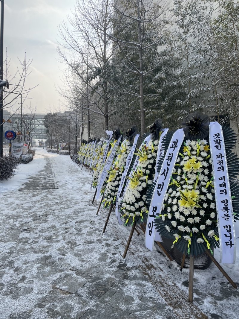 경기 의왕시 오전동에 위치한 이소영 더불어민주당 의원(의왕시·과천시) 지역 사무실에는 근조화한이 들어섰다. 근조화한 시위는 경마장 이전을 반대하는 차원에서 이뤄졌다.