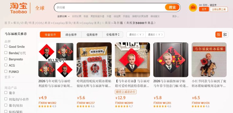 전자상거래 플랫폼 타오바오 판매자들도 이러한 열풍에 동참해 말포이 캐릭터가 그려진 스티커와 자석을 출시했다.