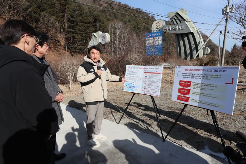 【파이낸셜뉴스 홍천=김기섭 기자】김진태 강원도지사가 6일 용문~홍천 광역철도가 도내로 진입하는 첫 관문인 홍천군 남면 유목정리를 방문해 사업 추진 방향을 점검하고 주민 소통 행보에 나섰다.