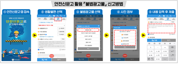 또한, 국민들이 ‘안전신문고’ 앱으로 불법 광고물을 간편하게 신고할 수 있도록 참여 방법을 적극적으로 홍보할 예정이다.