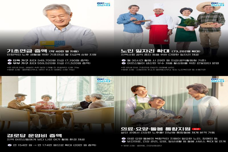 이현숙 전남도 노인복지과장은 "어르신이 살던 곳에서 안전하고 활기찬 노후를 보내도록 어르신 맞춤형 정책을 지속해서 추진하겠다"라고 말했다.