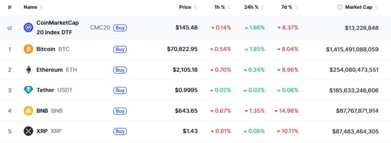 9일 오전 6시 10분 현재 글로벌 코인 시황 중계사이트 코인마켓캡에서 비트코인은 24시간 전보다 1.85% 상승한 7만822달러를 기록하고 있다.