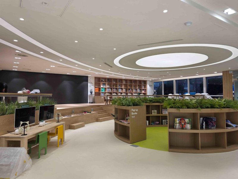 내부는 인공지능 기반의 엘이디(LED) 미디어 아트, 가상 인공지능 튜터, 실감형 체험 공간, 디지털 독서 콘텐츠 등으로 꾸며졌다.