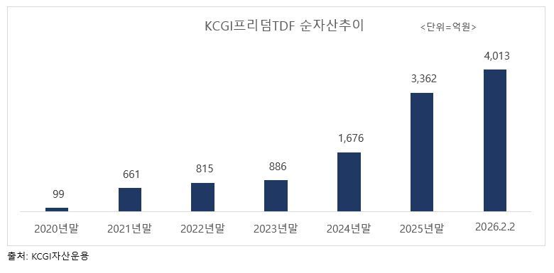 KCGI자산운용은 지난해 11월 24일 KCGI프리덤TDF시리즈의 순자산이 3000억원을 돌파한 2개월여만인 지난 2일 4000억원을 돌파했다고 9일 밝혔다.