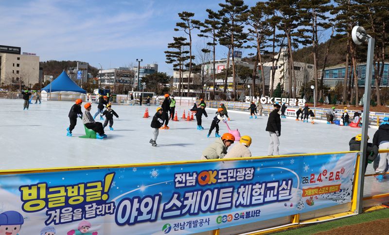 【파이낸셜뉴스 무안=황태종 기자】전남개발공사는 개발 이익 환원을 통해 전남도청 앞에 조성한 전남OK도민광장 야외 스케이트장과 눈썰매장이 4만명을 끌어모으며 겨울철 놀이명소로 자리매김했다고 9일 밝혔다.