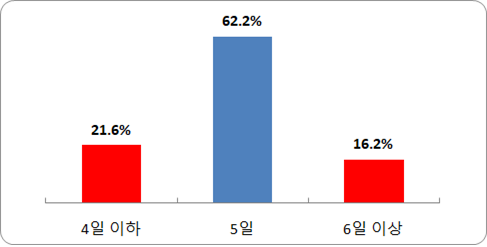 이에 과반 이상인 62.2%가 5일간 휴무하는 것으로 나타났고, '4일 이하' 21.6%, '6일 이상' 16.2% 순으로 조사됐다.