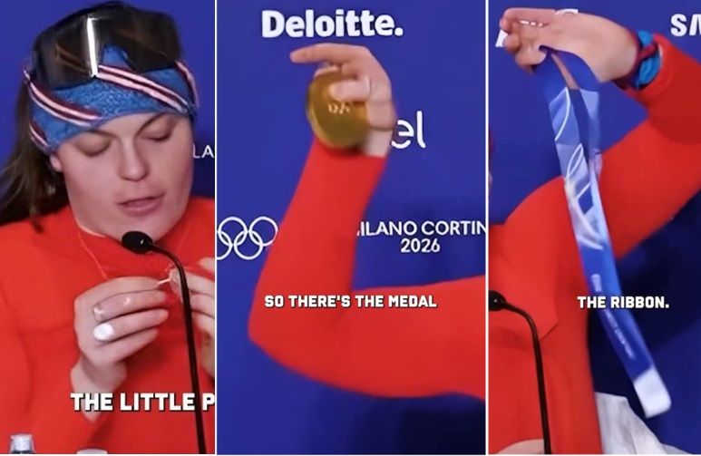 [파이낸셜뉴스] 2026 밀라노·코르티나담페초 동계올림픽에서 금메달을 딴 선수가 세리모니 중 메달이 파손되는 사고가 벌어졌다.