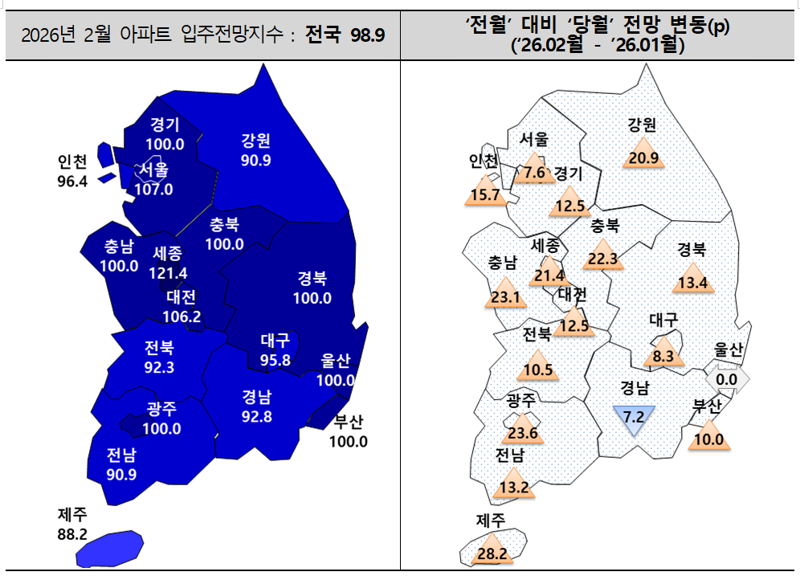 주산연 2월 전국 아파트 입주전망지수 발표
