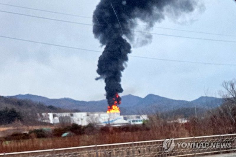 (경산=연합뉴스) 김선형 기자 = 10일 오전 7시 47분께 경북 경산시 하양읍 대한송유관공사 영남지사 옥외 유류저장 탱크에서 불이 났다.