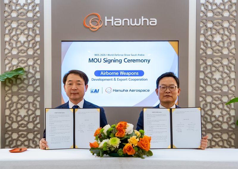 한화에어로스페이스는 KAI와 지난 9일(현지시간) 사우디아라비아 리야드에서 열린 제3회 세계방산전시회(WDS)를 계기로 ‘항공무장 사업협력 업무협약(MOU)’을 체결했다. 한화 부스에서 열린 MOU 체결식에는 손재일 한화에어로스페이스 대표이사, 차재병 KAI 대표이사 등 양사 주요 관계자들이 참석했다.