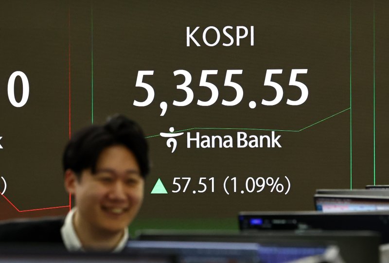 한국거래소에 따르면 10일 코스피 지수는 오전 9시 8분 현재 전장 대비 48.52포인트(0.92% 오른 5346.56을 가리키고 있다.