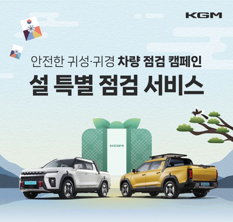 이번 차량점검 서비스는 오는 11일부터 13일까지 3일간 군포 광역서비스센터를 포함해 전국 321개 서비스센터에서 KGM 전 차종(대형 상용차 제외)을 대상으로 실시한다.
