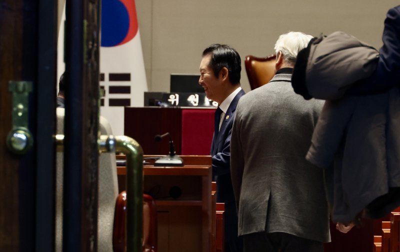 정청래 민주당 대표는 10일 합당 논의와 관련해 재선 의원들과 간담회를 가진 후 의원총회에서 전체 의원들의 의견을 경청했다.