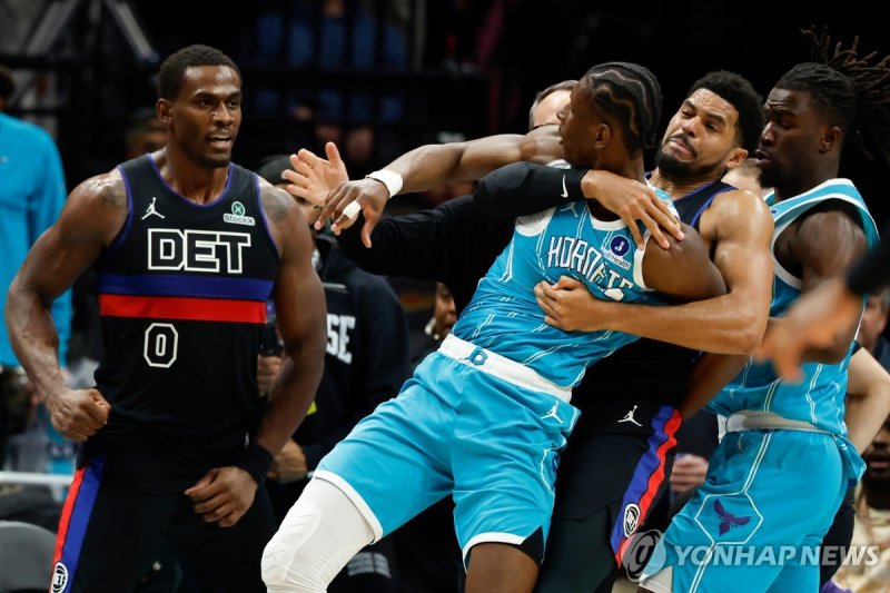 NBA 코트서 주먹 오가는 난투극…선수 4명 무더기 퇴장 소동샬럿-디트로이트 경기서 물리적 충돌…감독도 심판에 달려들다가 퇴장