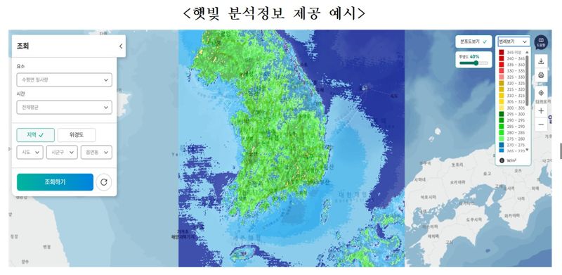 태양광발전에 쓰이는 햇빛 분석정보는 기상청이 운영 중인 천리안위성에서 관측한 태양복사량과 태양천정각 등 20여 종의 위성 자료와 지상 관측 일사량 자료에 인공지능 기법을 적용해 산출됐다.