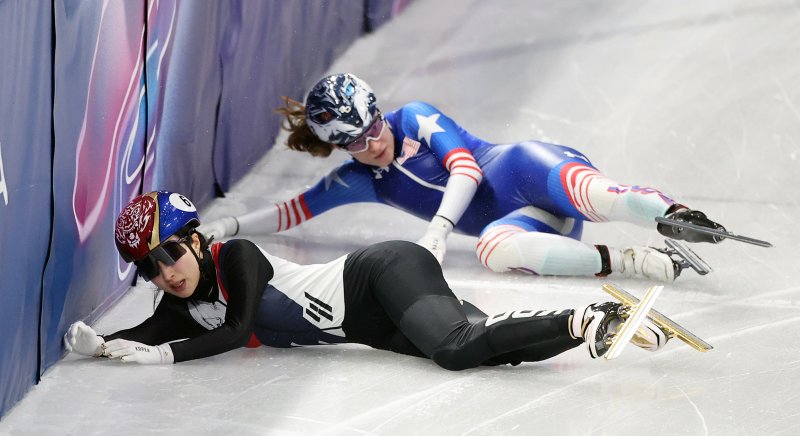 10일(한국시간) 이탈리아 밀라노 아이스 스케이팅 아레나에서 열린 쇼트트랙 혼성 2000m 계주 준결선 2조에서 김길리가 앞에서 넘어진 코린 스토더드(미국)와 충돌하는 악재 속 3위로 결승선에 들어왔다.