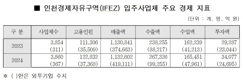 인천경제자유구역청은 지난 해 산업통상부 주관으로 실시한 ‘2024년 기준 인천경제자유구역(IFEZ) 입주사업체 실태조사’ 결과를 홈페이지에 공개했다고 11일 밝혔다.