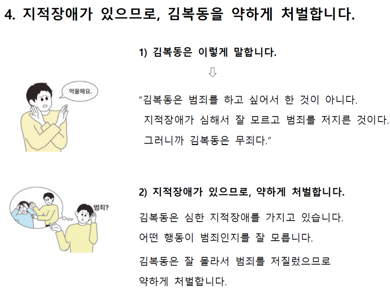 이 판결문은 이처럼 조금 더 쉬운 말로도 쓸 수 있다. 당사자가 이해할 수 있는 쉬운 말로 작성된 판결문은 '이지리드(Easy-Read)' 판결서라 불린다. 핵심은 단순히 어휘를 바꾸는 데 있는 게 아니라, 재판 당사자인 장애인이 판결의 결론과 이유를 실제로 이해할 수 있도록 전달하는 데 있다.