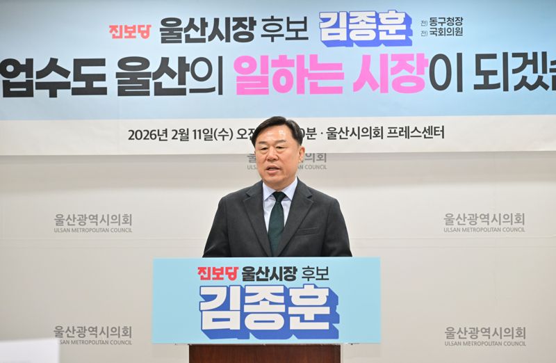 【파이낸셜뉴스 울산=최수상 기자】 울산시장 선거 출마를 위해 전날 퇴임한 진보당의 김종훈 전 동구청장이 첫 기자회견을 열고 본격적인 선거운동에 돌입했다. 김 전 구청장은 김두겸 울산시장의 지난 4년을 '허송세월'이라고 비판하면서 자신에 대해서는 정치, 행정, 소통 능력을 이미 검증받은 인물이라고 강조했다.
