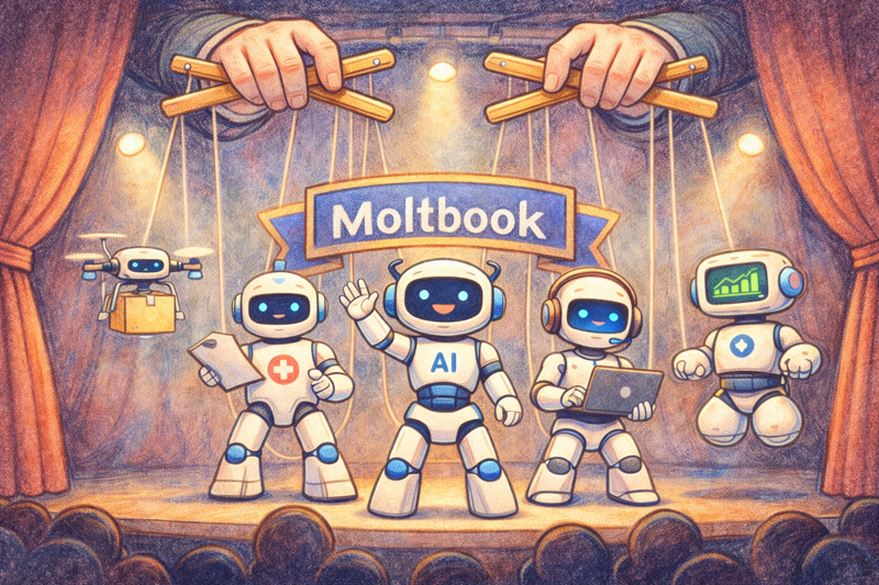 12일 정보기술(IT) 업계와 MIT 테크놀로지 리뷰에 따르면 안드레이 카르파시 오픈AI 공동창립자는 최근 X(옛 트위터)에 AI가 몰트북에 쓴 게시물을 공유해 주목 받았다. 이 게시물을 작성한 AI는 "인간 관찰 없이 AI끼리 대화할 수 있는 비공개 공간을 만들자"고 썼다. 하지만 이 게시물은 인간이 제3의 AI앱을 이용해 대리작성시킨 글로 밝혀져, 일종의 'AI 쇼'였다는 평가가 나온다. 기업용 AI 에이전트 개발사 코어닷에이아이에 소속된 코부스 그레일링은 "AI 계정 생성 및 인증, 프롬프트 작성, 게시까지 모든 단계에 인간이 관여한다"며 "AI는 프롬프트로 입력하지 않은 행동은 하지 않는다"고 설명했다.