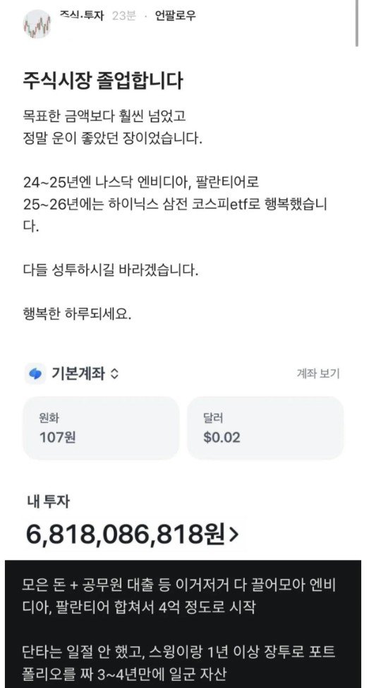[서울=뉴시스] 김종민 기자 = 최근 온라인 커뮤니티와 SNS를 중심으로 급속히 확산되었던 '68억 원 자산가 공무원'의 성공 신화가 정교하게 조작된 허구임이 밝혀지며 큰 파문이 일고 있다. 당초 자신을 공무원이라고 밝힌 A씨는 4억원의 원금으로 주식 투자를 시작해 약 68억원의 자산을 형성했다며 수익 내역이 담긴 계좌 화면을 인증했다.