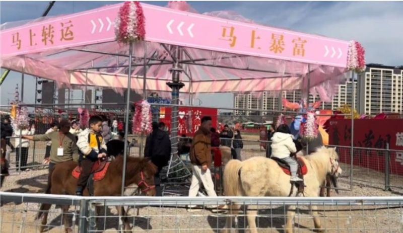 12일 홍콩 성도일보 등 현지매체에 따르면 중국 북서부 산시 성 시안의 관광지 ‘시경리’(诗经里)는 중국 최대 명절 춘제를 앞두고 지난 6일부터 살아있는 회전목마 놀이기구를 운영했다.