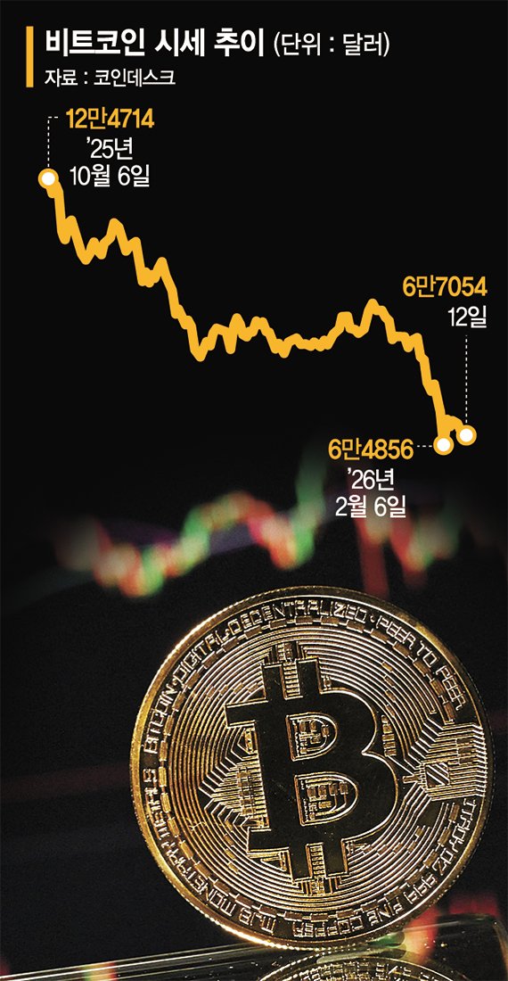 비트코인은 지난해 말 12만5000달러에 이르며 사상 최고치를 찍었지만 지난 5일은 6만5000달러 선도 무너질 정도로 가격이 반토막이 났다.