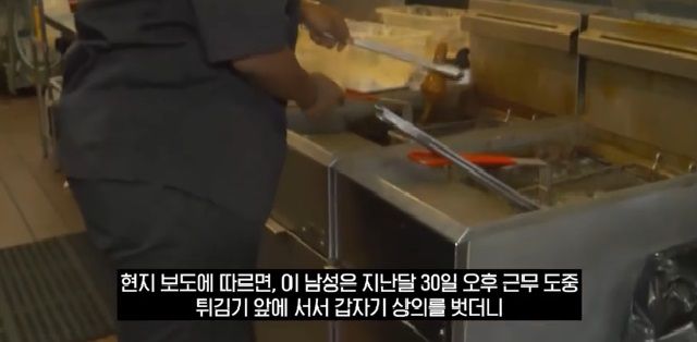 현지 보도에 따르면 남성 직원 A씨가 주방에서 근무 도중 갑자기 옷을 벗더니 튀김기에 머리를 들이밀어 자해를 시도했다.