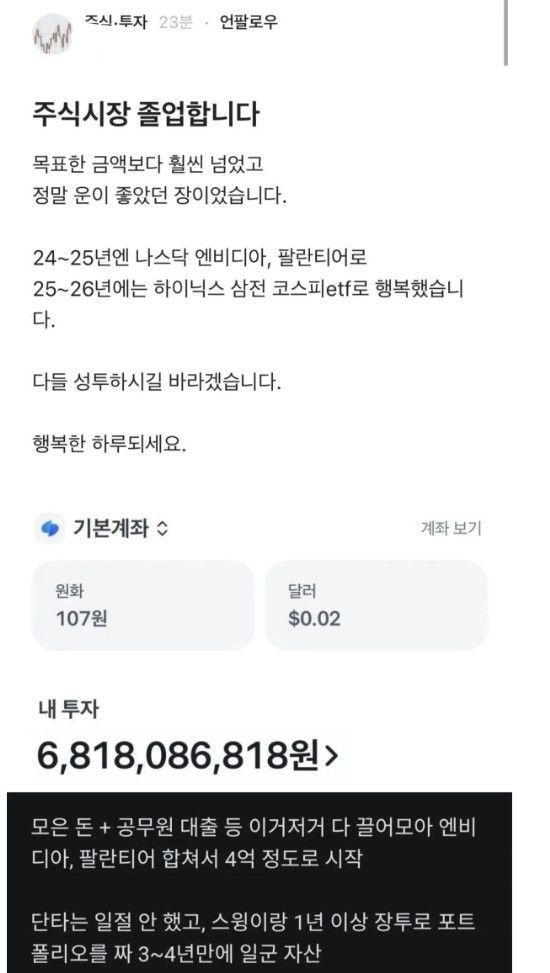 [파이낸셜뉴스] 최근 사회관계망서비스(SNS)와 온라인 커뮤니티를 달궜던 '68억 원 자산가 공무원'의 성공담이 치밀하게 꾸며진 거짓으로 드러나 논란이다. 본인을 공무원이라 소개한 A씨는 초기 자본 4억 원을 주식에 투자해 약 68억 원까지 불렸다며 수익률이 찍힌 계좌 사진을 증거로 제시한 바 있다.