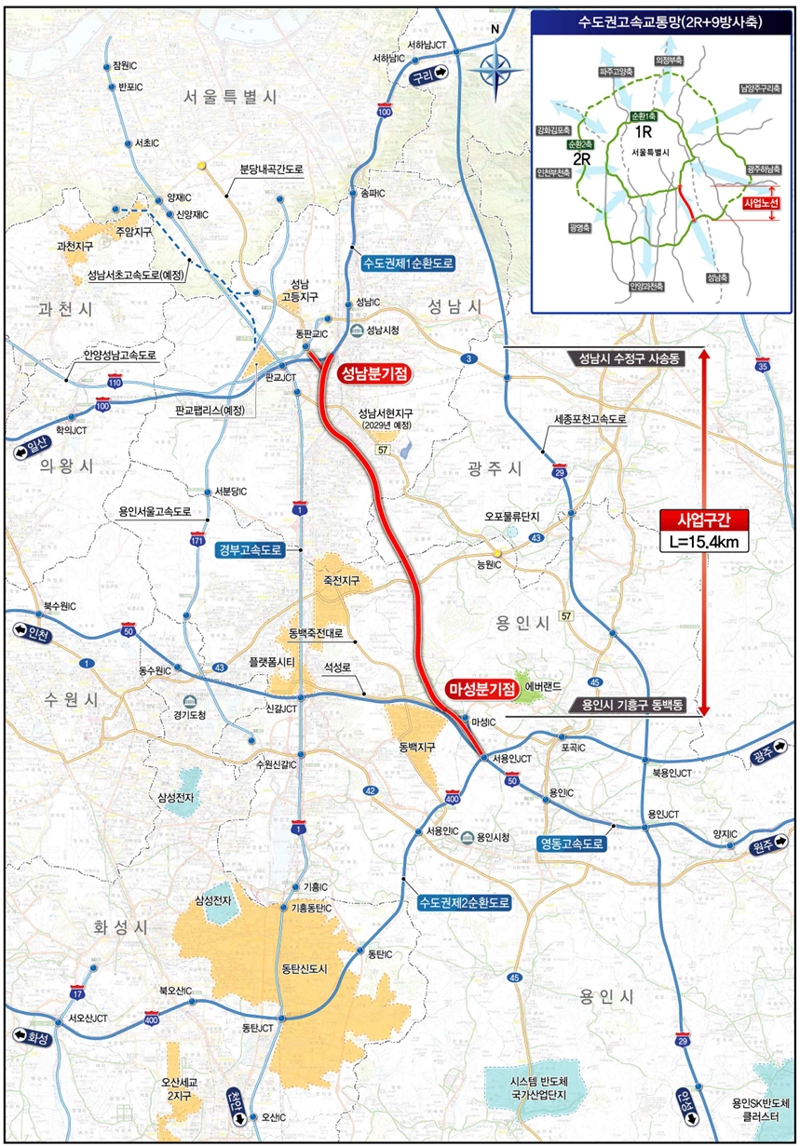 이우제 국토부 도로국장은 "용인-성남 민자고속도로는 영동·경부고속도로의 우회 경로로 교통량 분산에 기여할 것"이라며 "관련 절차를 차질 없이 추진하겠다"고 말했다.