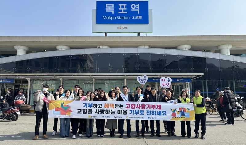 【파이낸셜뉴스 무안=황태종 기자】전남도는 설 명절을 맞아 13일 목포역과 순천역에서 고향사랑기부제와 '전남 사랑애(愛) 서포터즈' 활성화를 위한 고향사랑 실천 캠페인을 벌였다고 밝혔다.