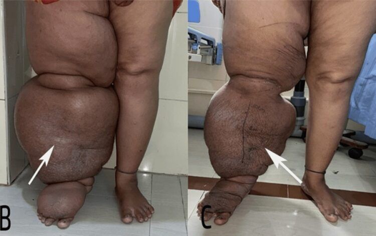 연구진은 다리 림프부종을 앓는 인도인 환자 14명의 사례와 함께 심각한 증상을 보인 환자의 환부 사진을 공개했다. 대상자 가운데 9명(64%)은 남성이었다. 대다수가 비만 체형이고 이들은 모두 질환의 3~4단계에 해당하는 중증 상태였다.
