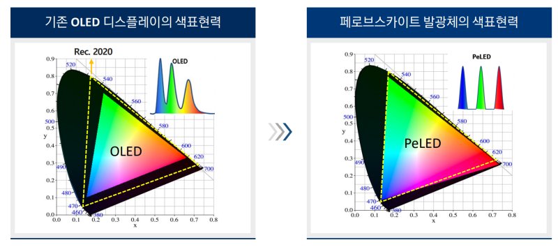 페로브스카이트의 발광 성능은 유기발광다이오드(OLED)와 무기양자점 발광다이오드(QLED)보다 우수하다. 초고해상도 TV, 증강현실(AR), 가상현실(VR) 등 차세대 차세대 디스플레이 활용이 기대되는 소재다. 하지만 대량 생산시 재료 합성 과정에서 나노 결정의 균일성이 떨어져 양산이 어렵다는 문제가 있었다.
